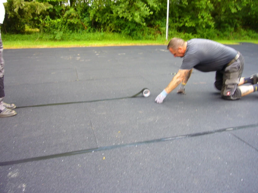 6. Verbinden der trockenen Schutzmattenkanten mit einem flexiblen Klebeband;